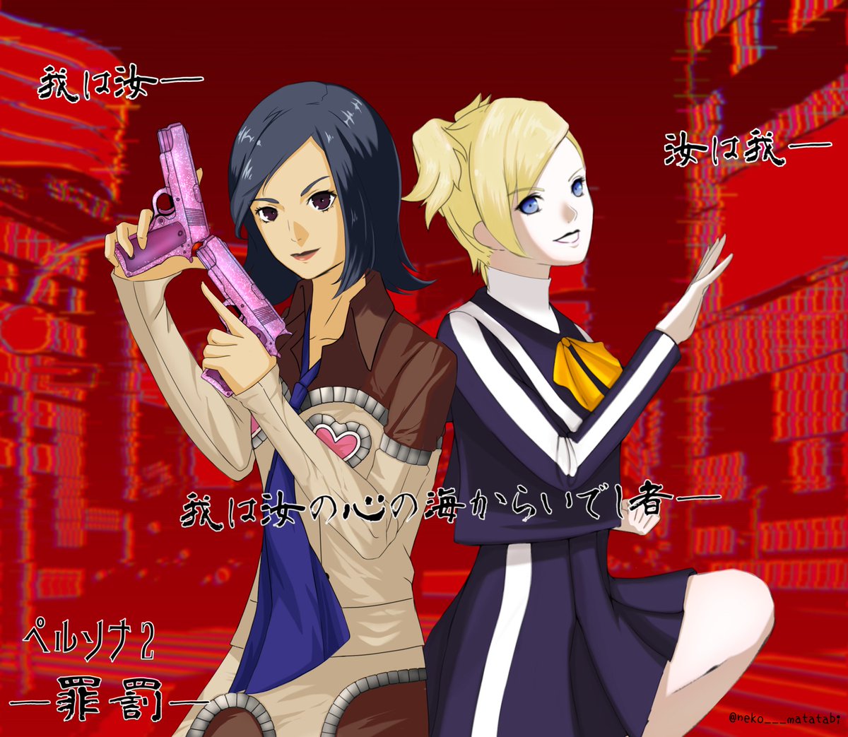 ペルソナ罪罰よりギンコとマヤ姉のFA描かせていただきました~❤ この頃のシステムや雰囲気とか諸々全部大好き‼️ ヤイルカメーン!! #ペルソナ2 #ペルソナ