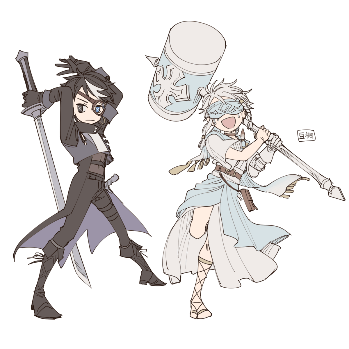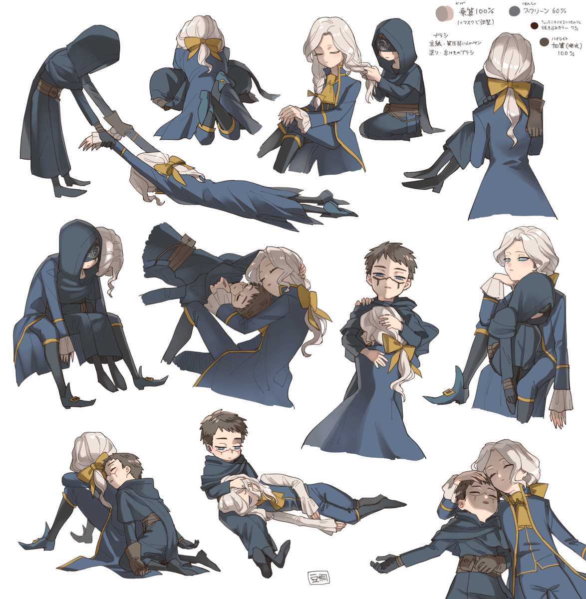 「無常と占い師」 大変長らくお待たせいたしましたラストワン賞フルカラーでどうぞ!!!!!!!!!コスト度外視で好きな衣装で描きました 一生好き 嬉しいお言葉もたくさんありがとうございます~~~!😭🙏💕💕 #豆桐のお年賀2023