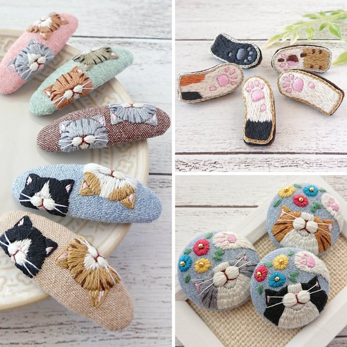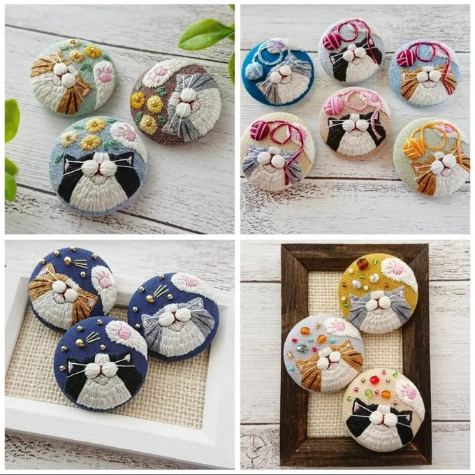 #誰か優しい人が拡散してくれてフォロワーさんが増えるらしい なんと!そうだったら作っていてこんな嬉しいことはありません✨ 猫限定ですが🐱刺繍しています