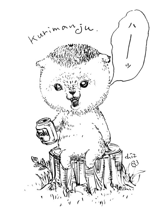 そういえばフワフワの方もくりまんじゅう描いたことないなと思って。 謎の動物くりまん先輩です #ちいかわファンアート