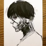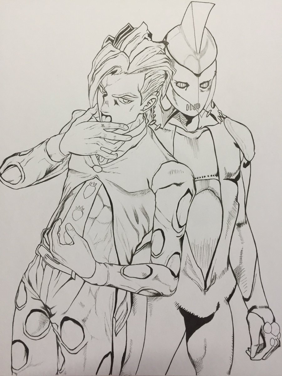ペン画出来た…‼️ ダラダラしてたから、ここまでくるのに2ヶ月もかかった((.;゚;:Д:;゚;.)) でもあとは楽しいコピックやー😍 #ジョジョの奇妙な冒険 #パンナコッタフーゴ #フーゴ #パープルヘイズ #荒木飛呂彦 先生 #模写 #ペン画 #wip
