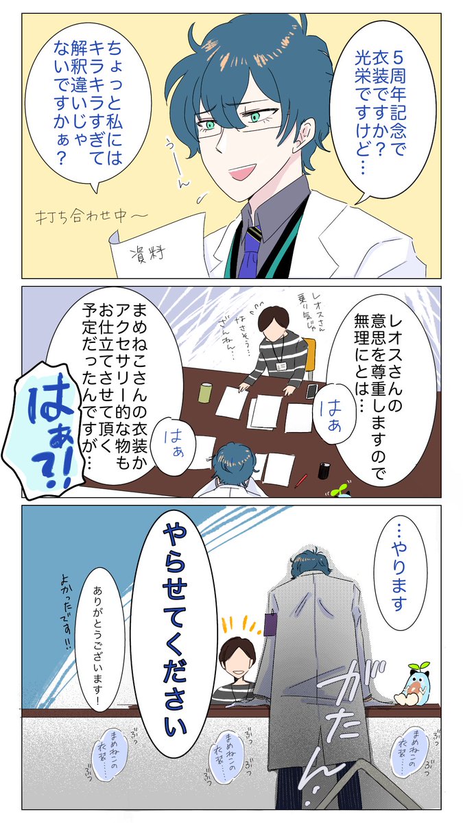 63 364 #まめねことレオス 衣装合わせとかしたのかな〜?という妄想です。 ⚠️捏造漫画 23/01/19 21:52