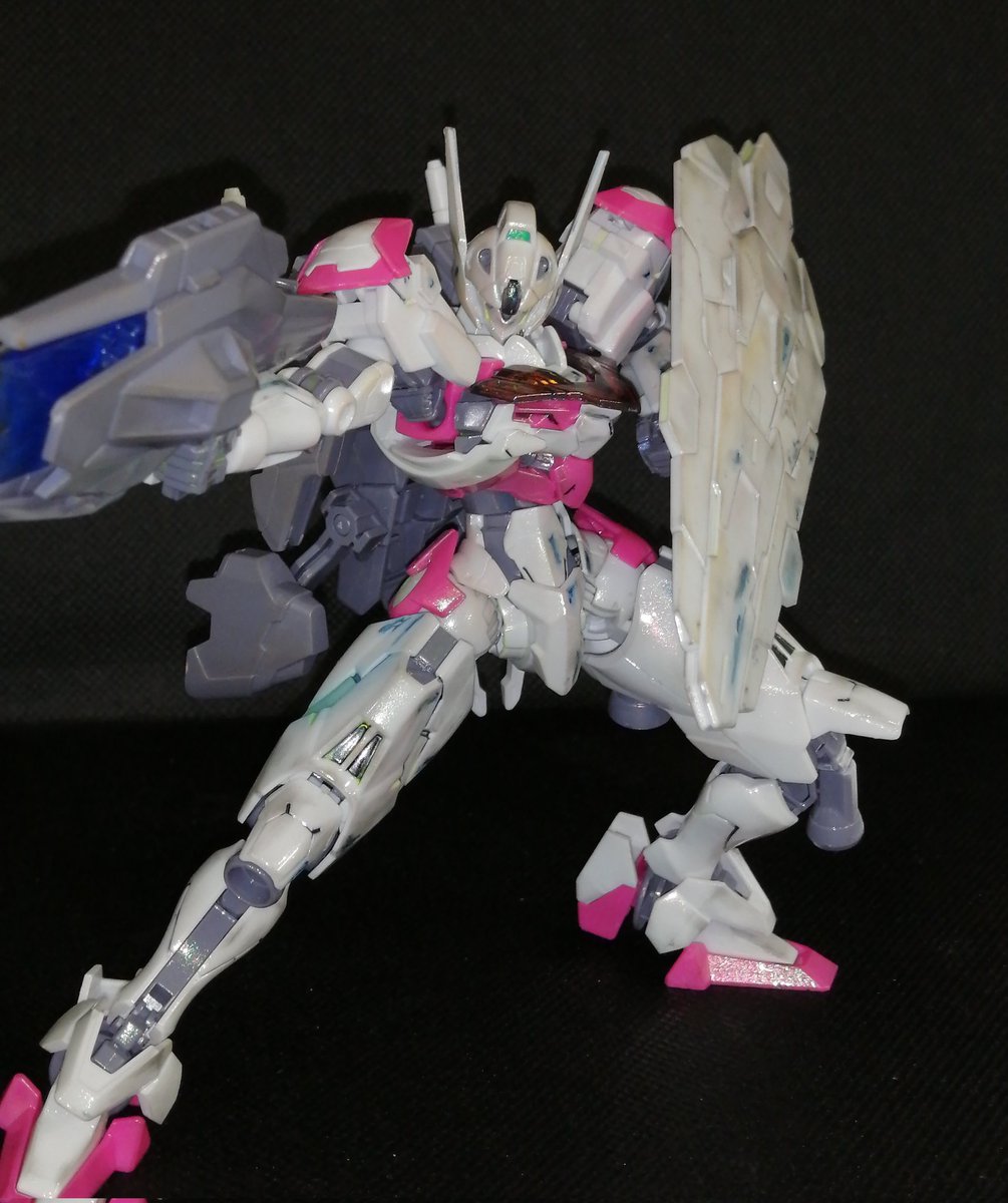 ガンダムルブリス完成しましたー😍✨ 汚し→パール3色→クリアー→蛍光カラーでアクセント…と、リアルさと透明感の両立しているパッケージアートのイメージを目指してみました☄️☄️☄️ ちゃんと雰囲気出てますか🥺❔❔ #ガンプラ #ガンプラ好きな人と繋がりたい