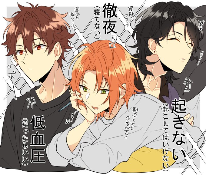 2206 16.6K リクエスト【零・レオ・千秋の寝起き】(千秋以外寝起きじゃないのすみません笑)私の推しトップ3を選抜してくださって胸熱でした…描き足りない… 23/06/25 19:04