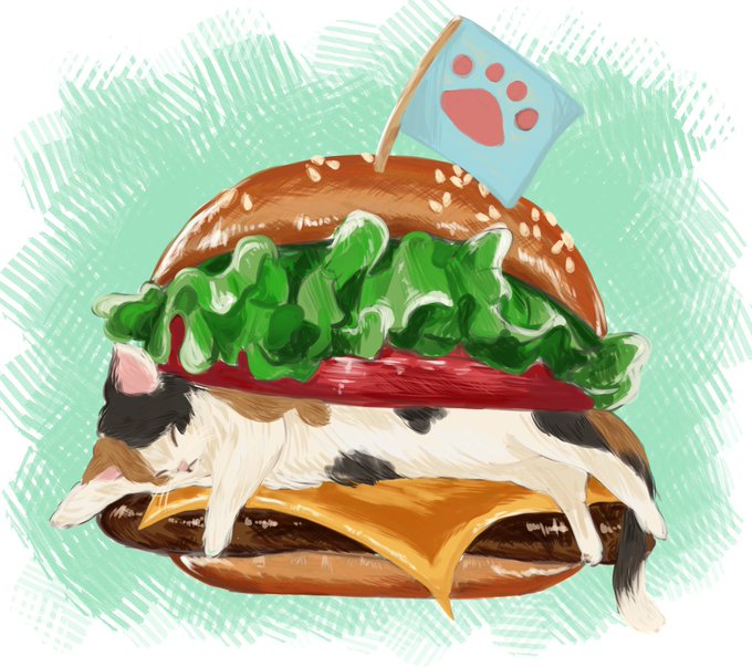 猫ちゃんバーガーいかがですか?!🐱🐈🐱🐈 #イラスト #イラスト練習 #猫