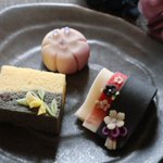 21 65 実休光忠の茶菓子🌿 練りきりと浮島、外郎で作りました☺️ 23/08/23 17:35