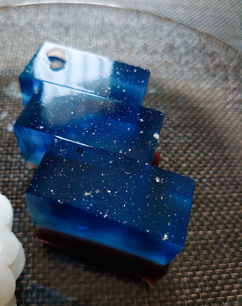 宵に想ひはせ🍇 チューハイでアガーのゼリーを作りました🍸 (アルコールは煮切ってあります)