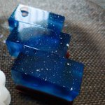 七星剣さん風の和菓子🍡 外郎の蝶と星空羊羹をアレンジしてみました☺️ 羊羹の表面は銀箔を加えた層にしてあるので角度を変えると星空のようにキラキラします🌟