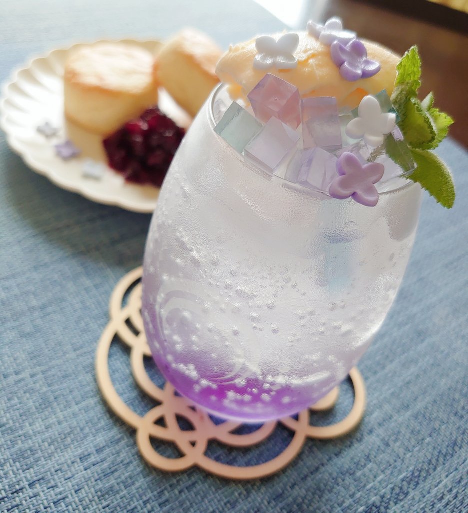 紫陽花クリームソーダ🍹 ジューンベリージャムとスコーンで6月のおやつです☔🌿