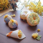 29 85 ミモザの花束練りきりはリボンがまんばちゃんの紐になってます🎀☺️ 23/03/18 18:27