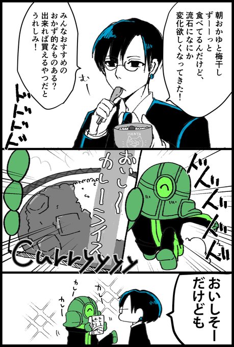 25 401 ある日のリモーネ先生とミントスさんの会話より。カレーおかゆ美味しいのかな‥🍛 #リモー絵先生 #bintrollFA 21/11/14 21:45