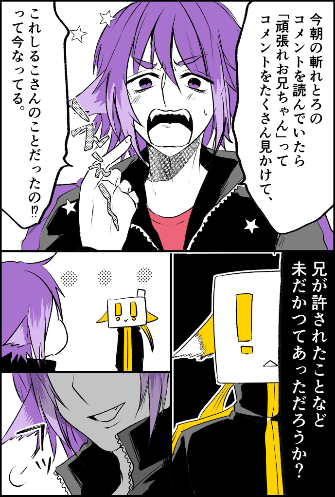 しるこさんとはこたろーと、とっくんさんの会話より。仲良し兄弟…🐶📦 #bintrollFA