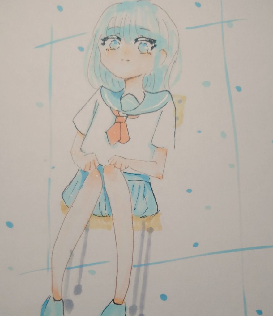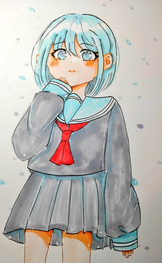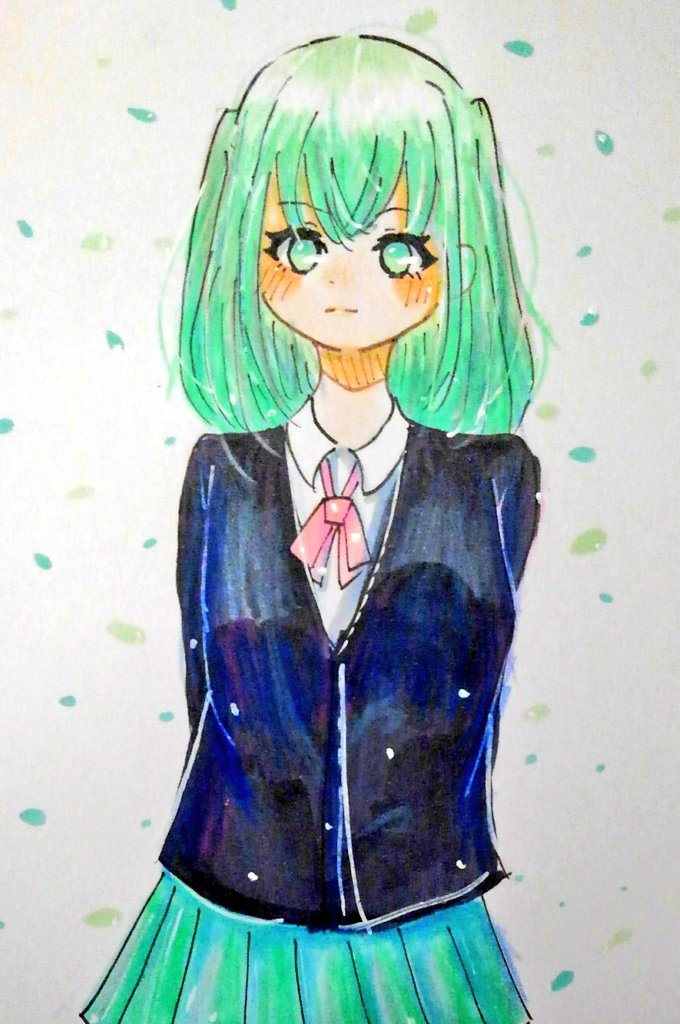 コピックと色鉛筆で描いた女の子! いつもと違う感じですが、どうですか?? #イラスト #イラスト好きな人とつながりたい #絵描きさんと繋がりたい