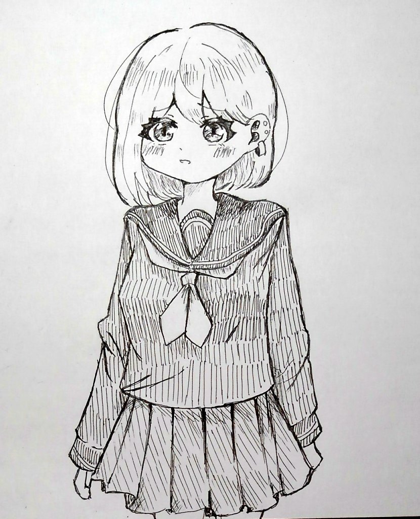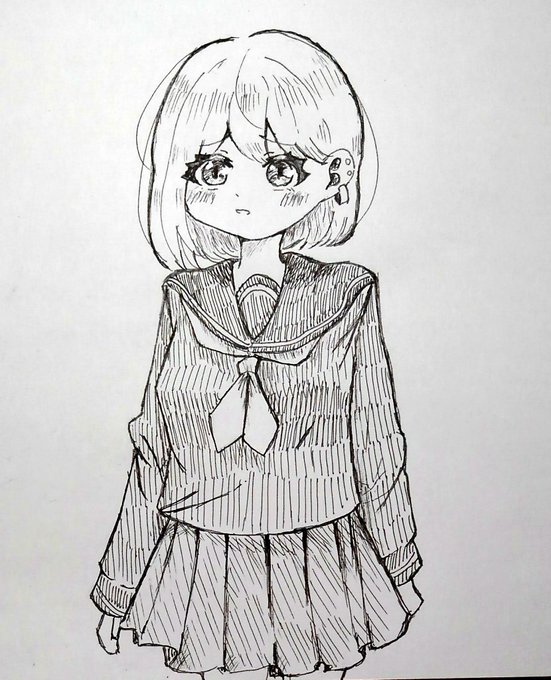 黒セーラーの女の子をボールペンで描きました!黒セーラーもいいですね! #イラスト #絵描きさんとつながりたい #イラスト好きな人と繋がりたい