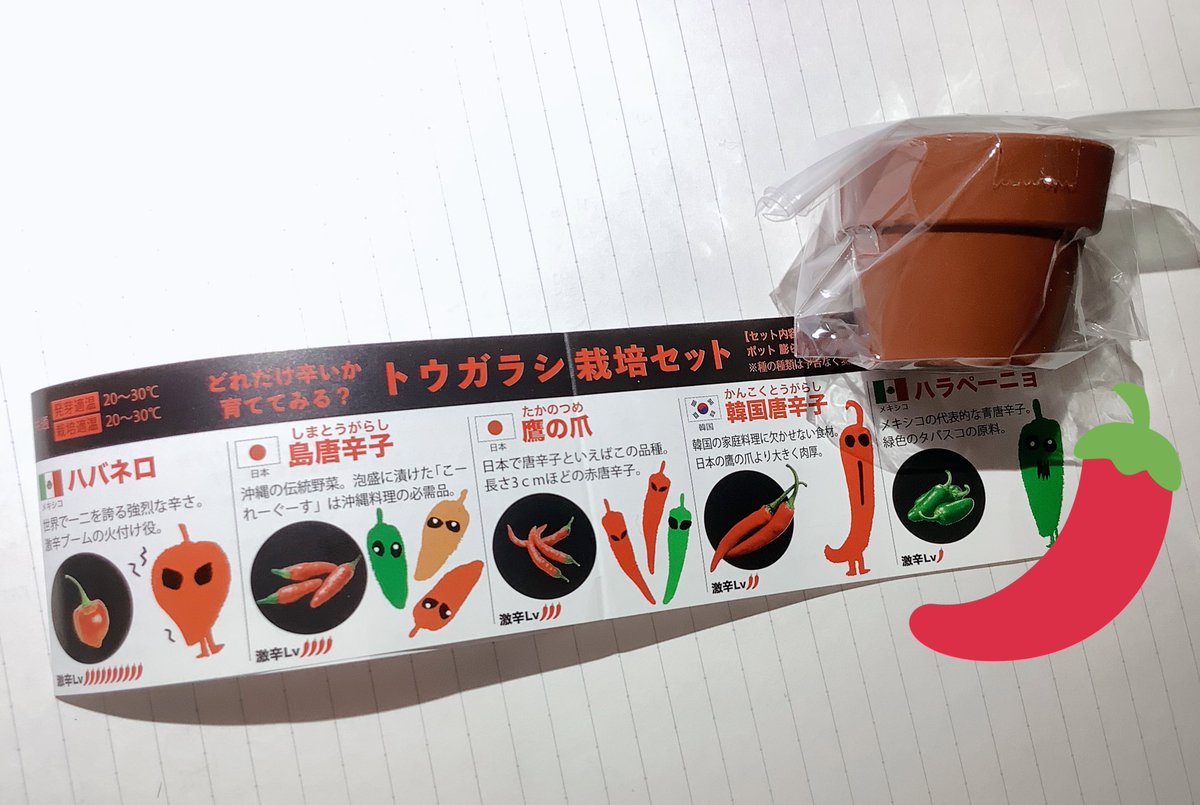 ガチャガチャでトウガラシ栽培セットなるものがあった!!! 元気に育てよ!!! #さ絵ぐさ