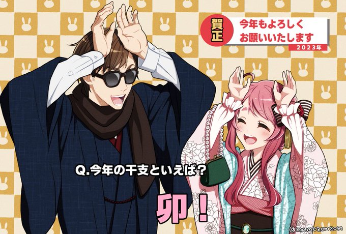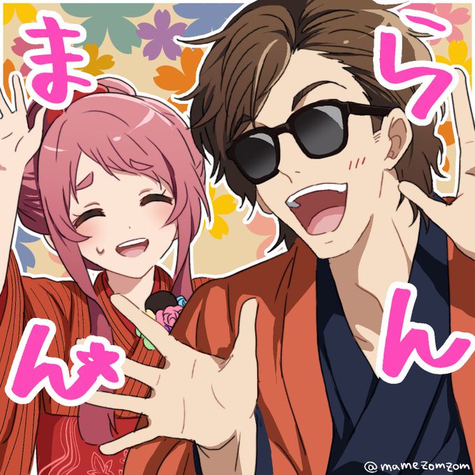 23 108 あとマモ誕の時に描いたやつ、せっかくなんでさくらも描いてイチャイチャさせときました 23/07/15 13:58