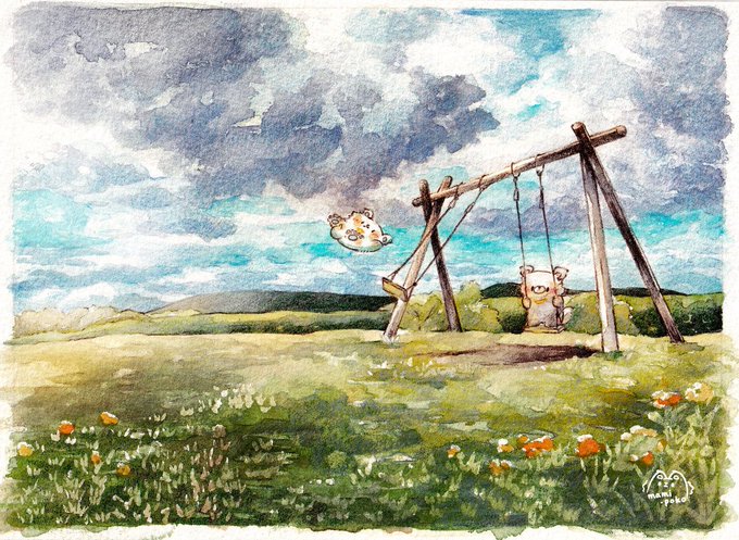 10 61 #ゴールデンウィークSNS展覧会2023 スマホサイズにするといい感じ✨ オリジナルキャラで絵本のような世界を描いてます☺️ #watercolor #水彩画 23/05/03 17:06
