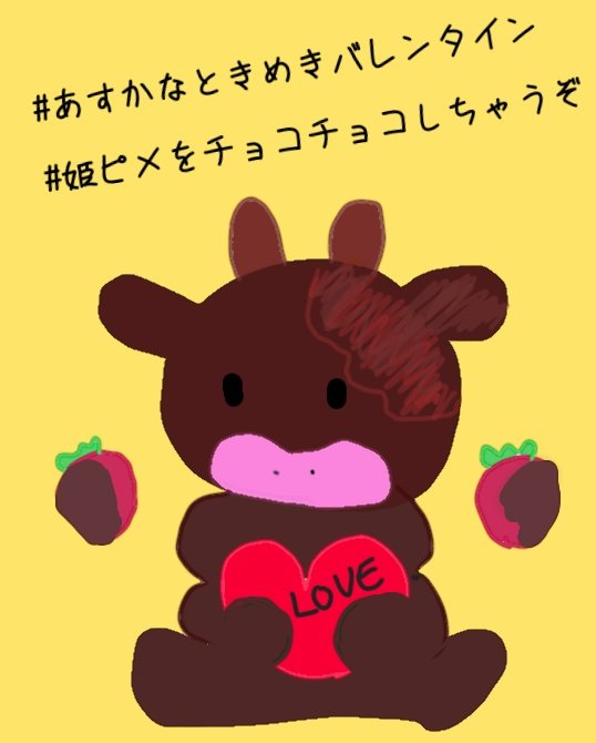 苺ちゃんムッチョチョコ💝どうぞ💕 星空くんが大好きなプリン色に背景したよ🍮🤭💕 大好き❤いつもありがとう❤❤❤ (透過じゃなくて背景つけちゃった) #あすかなときめきバレンタイン #姫ピメをチョコチョコしちゃうぞ #あすかなアート