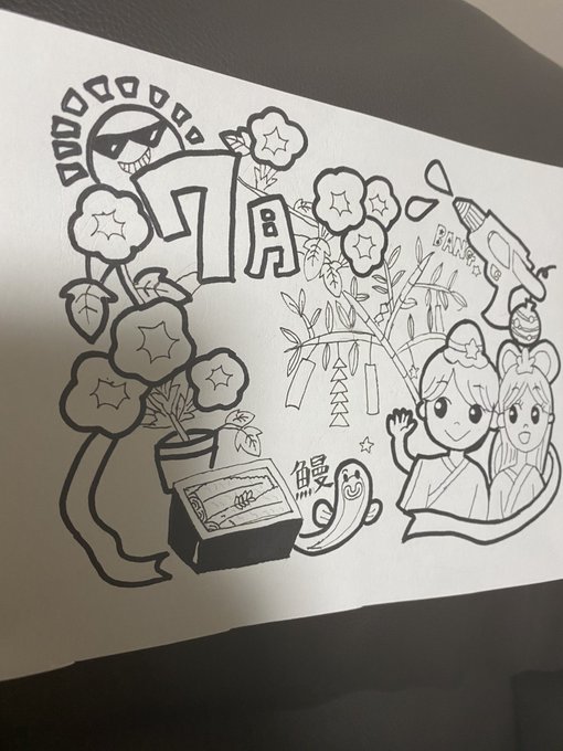 1 7 今日は下書きを描いた 7月をテーマにしたイラスト。 色々なタッチで描けるようになりたい #イラスト #7月 #練習中 #イラスト好きな人と繋がりたい 22/07/28 23:46