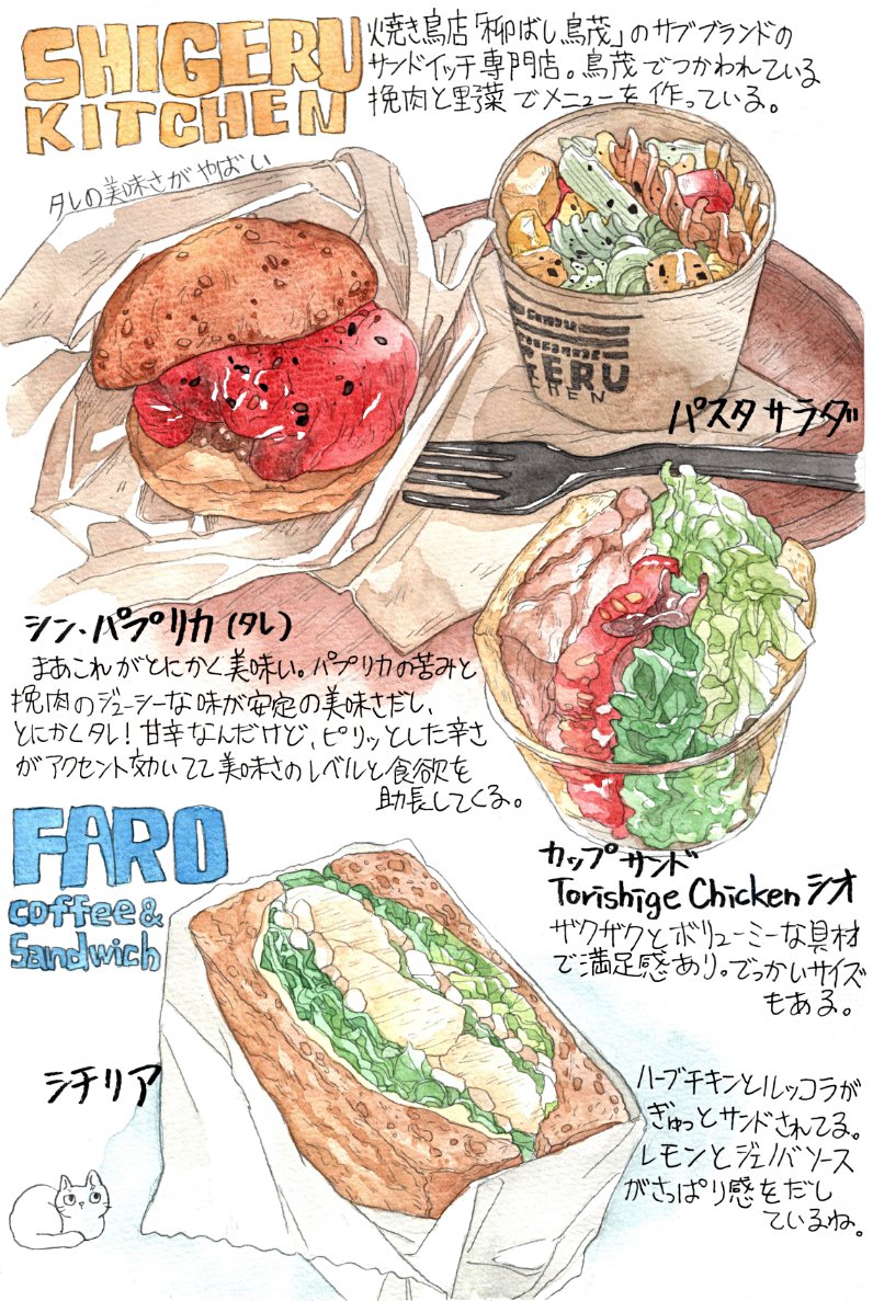 🍜石楽 🍔フレッシュネスバーガー ☕️Urth Caffe 🧋頁茶ゴンチャ 🍎candy apple 🍵nana's green tea 🥪アンティコカフェ 🫓THE ALLEY 🍔SHIGERU KITCHEN 🥪FARO サンドイッチが多いね。