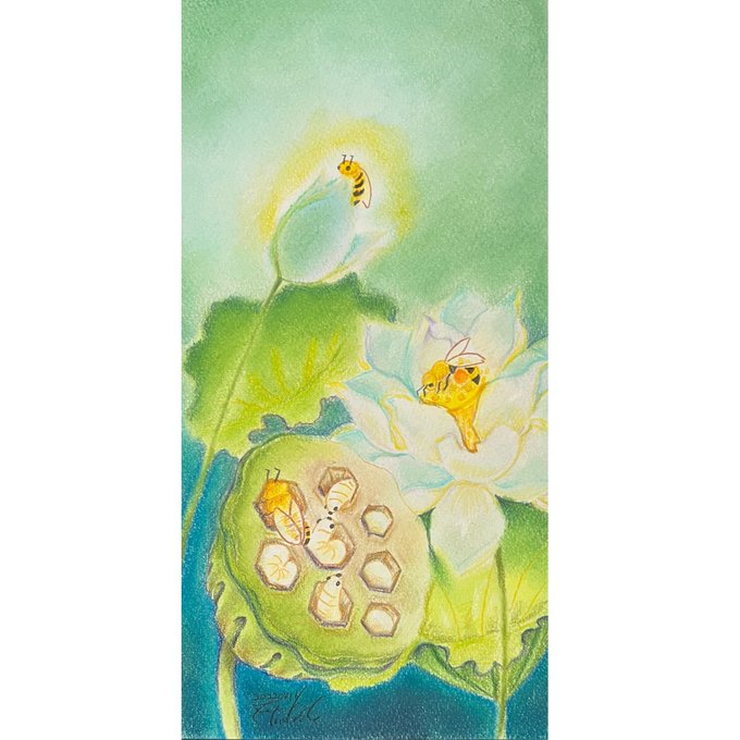 お客様に描いたリーディングアート 「喜びの解放」というメッセージ もうすぐ色んな運気が花開くよ と伝えたら ビックリされて 半年位 何故か蓮の蕾の中にいる夢を 見ていたと言ってみえました これがリーディングアートです笑 #パステル画 #絵描きさんと繋がりたい #占います