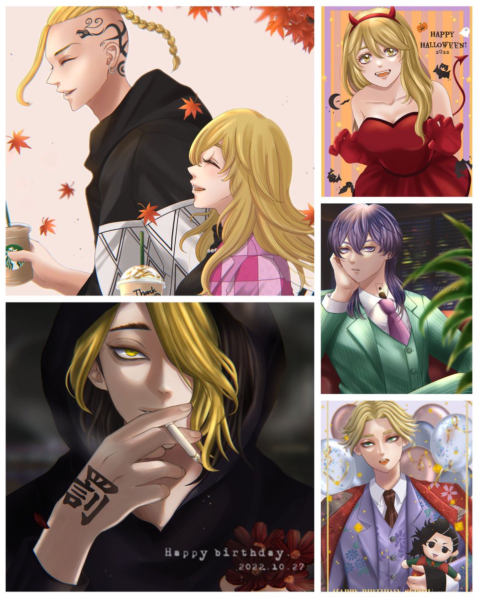 #今月描いた絵を晒そう 普段描かない人ばかりで合間の息抜きエマちゃんに救われた10月でした🥹💓 リベ終わっちゃうの寂しいけどこれからも沢山描いていきたいなぁ☺️✨ 来月もよろしくお願いします🙇🏼♀💕