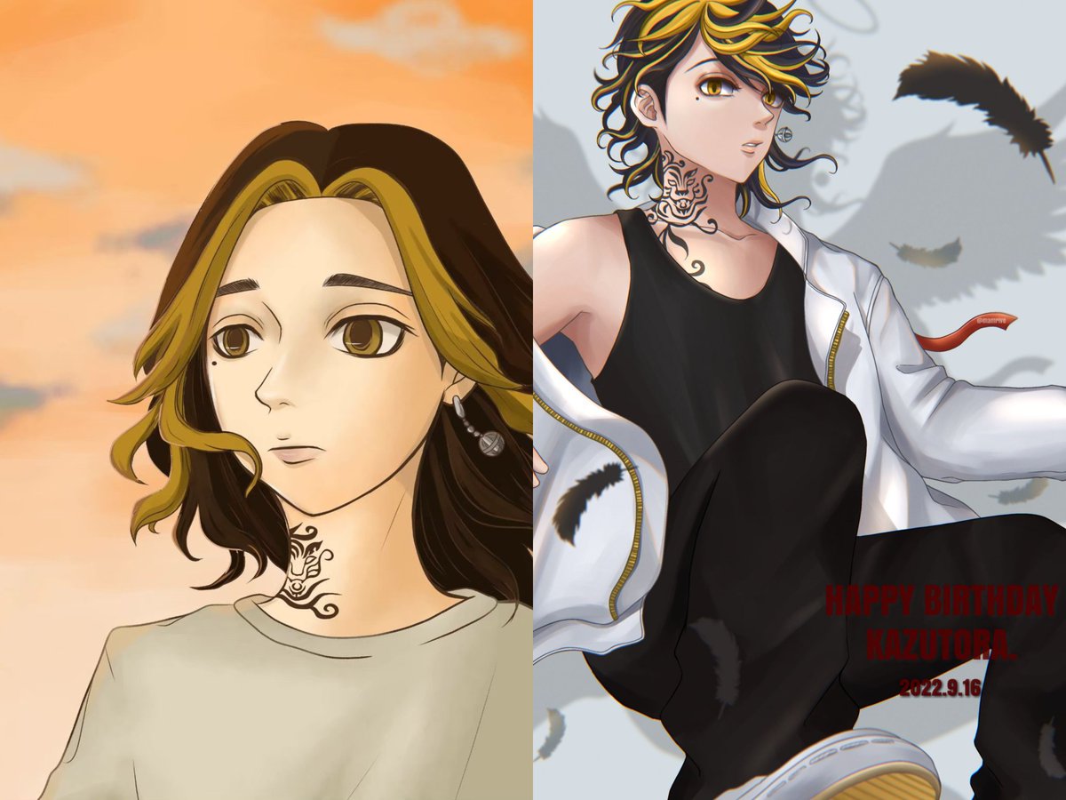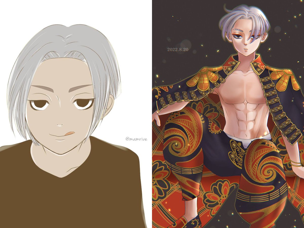 #一年間で絵が上達してるか見てみましょう デジタルでイラストを描き始めて一年☝️✨ 私の記念すべき一枚目はばじしゃん😂 ガンギまりすぎて笑う😂😂 というか全員色々酷くて恥ずかし😂 描くのが楽しくてほぼ毎日ペンを握ってたな🥰絵を描くきっかけになった東リベに出会えて良かった☺️❤️✨