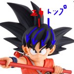 無印ならではの簡素さを守りつつ退屈させない造形にしたくて、頭頂部の位置を正中からやや右にずらし、前髪のベクトルをそこに持っていくことでシンプルに見せつつ流れを変化させて単調に見えないよう調整しました^ ^ 地味なこだわりポイント汗 #ドラゴンボール一番くじ #孫悟空