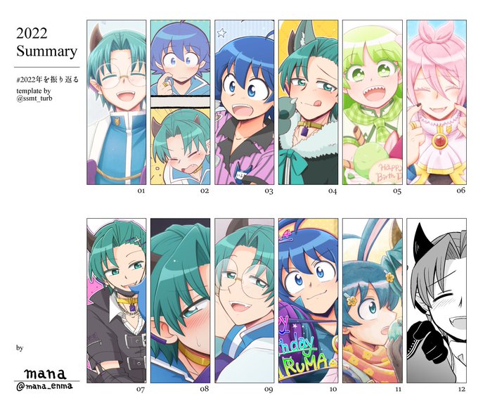 #2022年の絵を振り返る 今年全然絵描いてないし埋まらないだろうなと思ってたけど意外と描いてた。キリヲばっかりだけど twitter.com/mana_enma/stat…