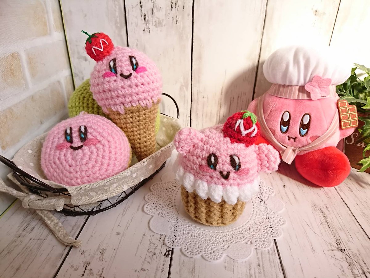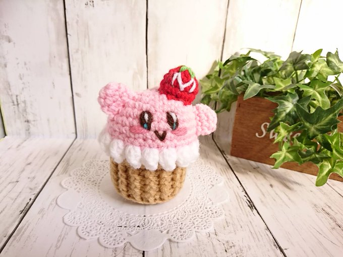 母親の新作・カップケーキカービィです!おてて生えてます(笑) かわいい…そして美味しそう… #カービィ #あみぐるみ ちなみにこの人です↓ instagram.com/mana.yuki/