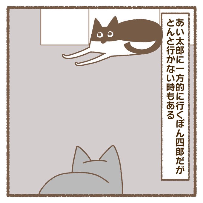 2 17 あい太郎とぽん四郎:前編 一方的コミュニケーションのぽん四郎。 ブログで2話分先読みできます。 #猫 #猫多頭飼い #猫との暮らし #猫漫画 #漫画が読めるハッシュタグ 23/03/06 20:00