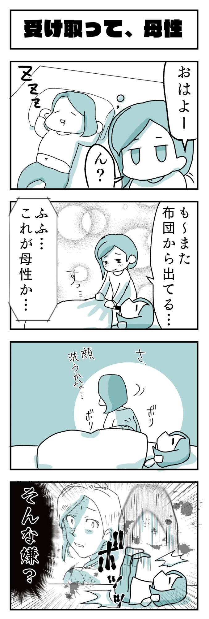 受け取って、母性。 #漫画が読めるハッシュタグ #育児漫画 #育児絵日記 #育児日記 #育児も創作も楽しもう #エッセイ漫画 #コミックエッセイ #4コマ漫画 #布団断固拒否 #布団が吹っ飛ん