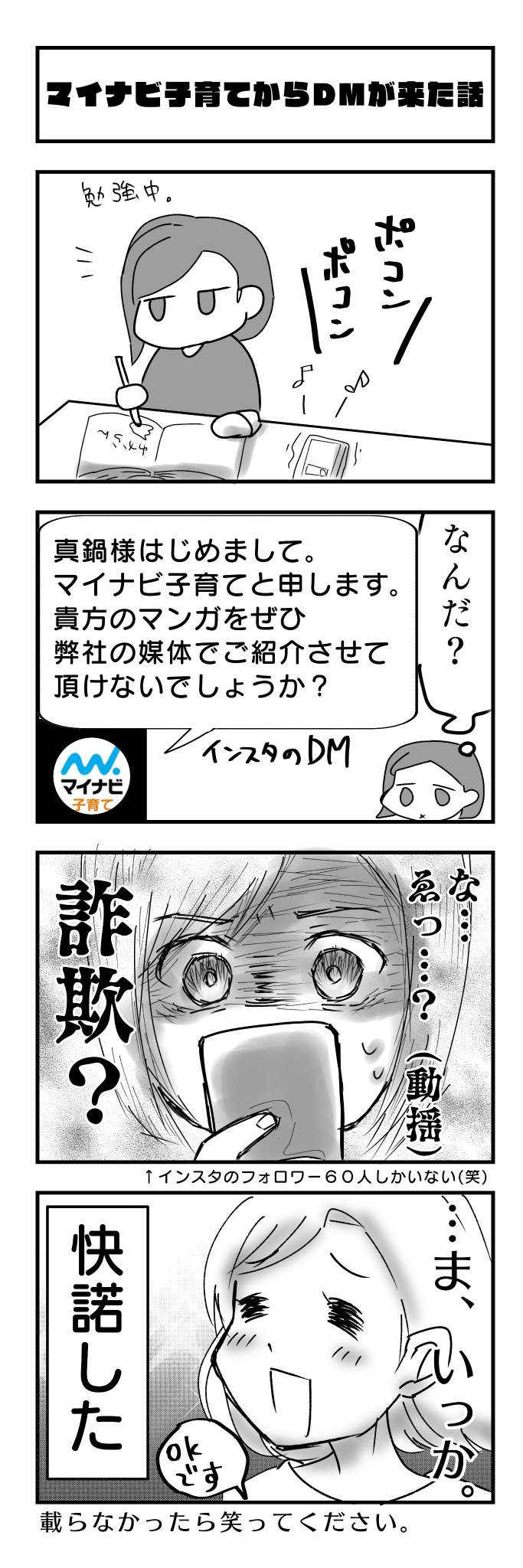 1 1 マイナビ子育てからDMが来た話。 信じていいんだよね?マイナビさん!! #マイナビ子育て #マイナビ #育児漫画 #DM #育児絵日記 #漫画が読めるハッシュタグ #エッセイマンガ #実話 #公式アカウント #4コマ漫画 23/04/25 20:00