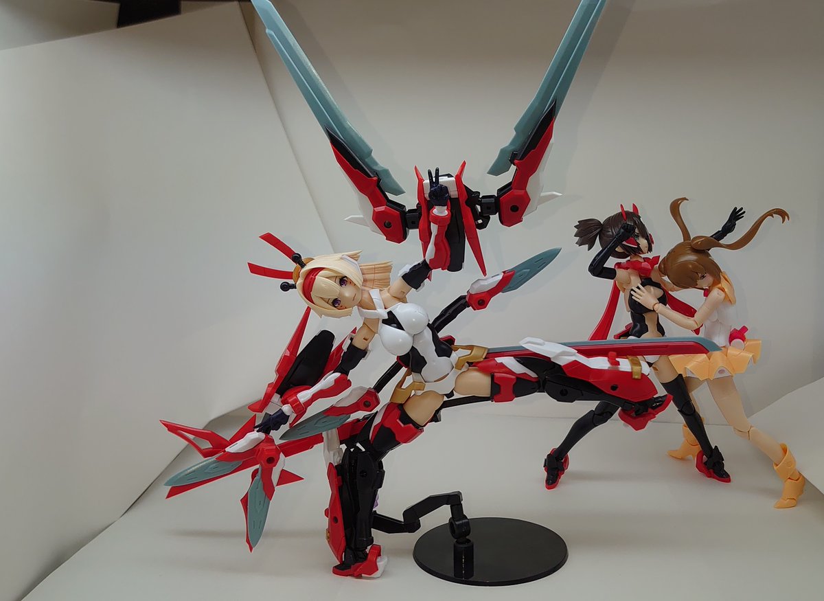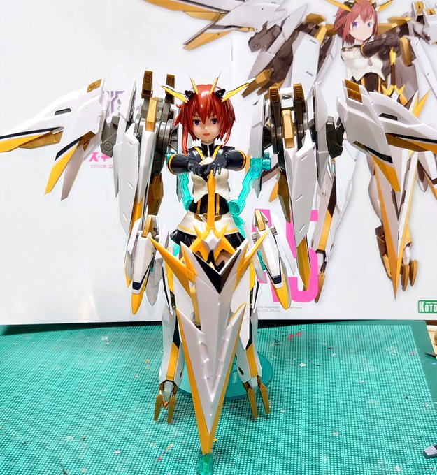 すぐみ、やっと完成したった!!! なんだかんだで部分塗装とかしてたら、こんな時間になってしまった。 そして折角だから、ゲームにはないフルバーストっぽいポーズも取らせてみたり #アリスギア #メガミデバイス twitter.com/manaburn_oji…