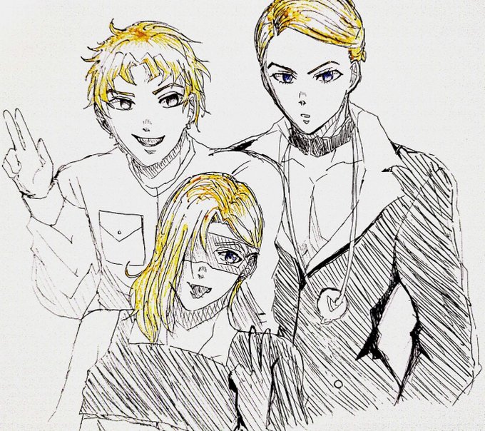 原作金髪3人組です。ボールペンなので修正できないのキツイです…( ´・ω・` ) #JOJO版深夜の真剣お絵描き60分一本勝負 #jjba #jjbafanart #ジョジョ #アナログ #ワンドロ
