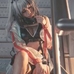 "Columbian, feline, female, silver hair, amber eyes and black crossbow. She's both a mercenary and an assasin" - Hellagur CN : Schwarz GN : Arknights PN : Braised Egg Photography #Schwarz #Arknights #sniper #arknightsCosplay #cosplay #cosplayergirl #cosplayer #ArknightsGlobal
