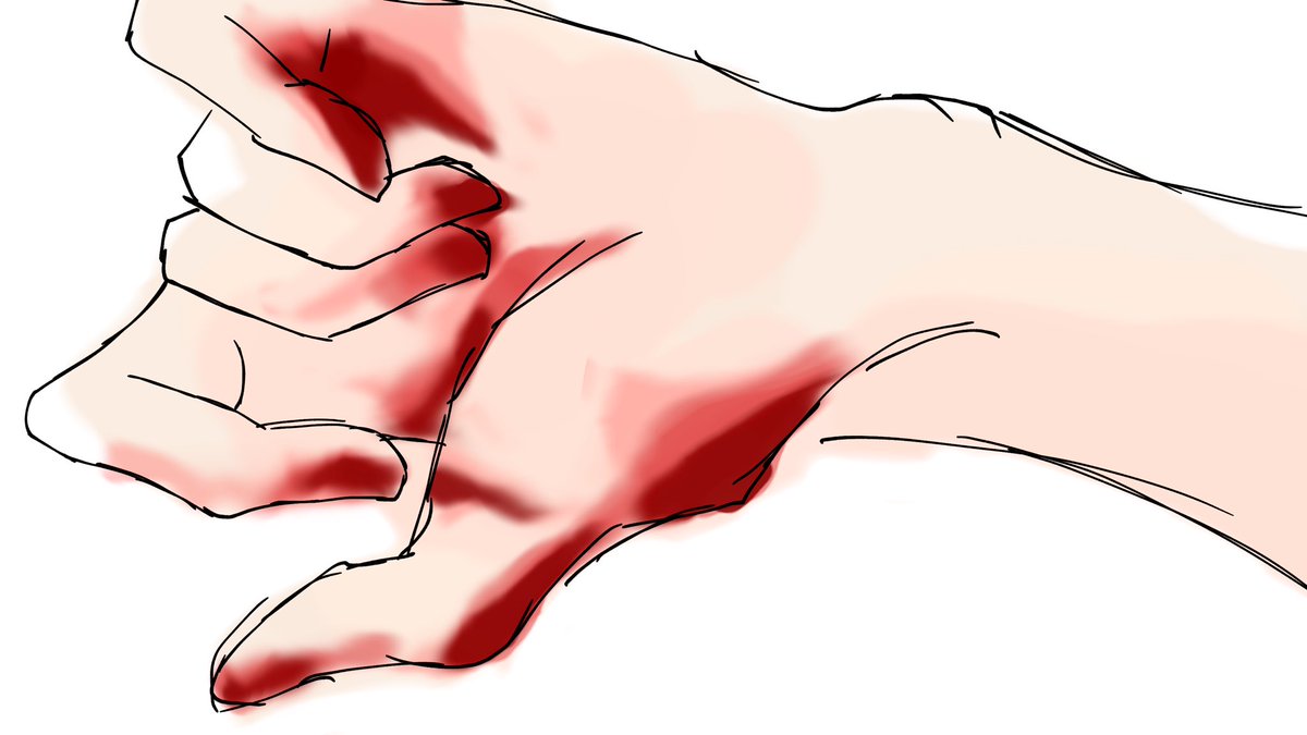乾いた血ちゅーい! おててー #イラスト #落書き