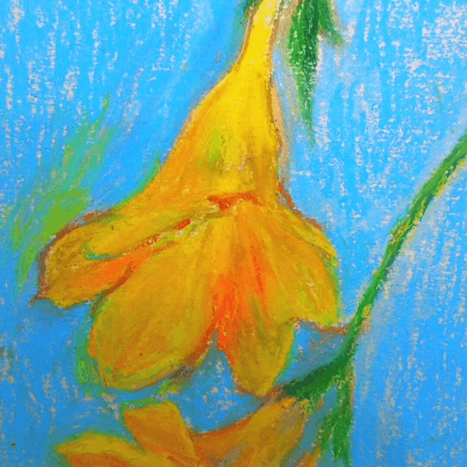 6 60 きょうはフリージア✨ いつになく花もちが良くて嬉しいです。 (画用紙にクレパス) #フリージア #クレパス #サクラクレパス #絵描きさんと繋がりたい #黄色 21/12/01 20:37