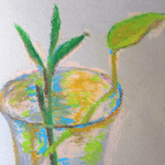 ポトスと榊✨ (画用紙にクレパス) #ポトス #榊 #クレパス #絵描きさんと繫がりたい