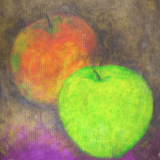 りんご✨ 赤いりんごと青いりんごでは香りがちがいますね。 (パネルにアクリル画) #りんご #赤いりんご #青いりんご #アクリル画 #絵描きさんと繋がりたい #感謝