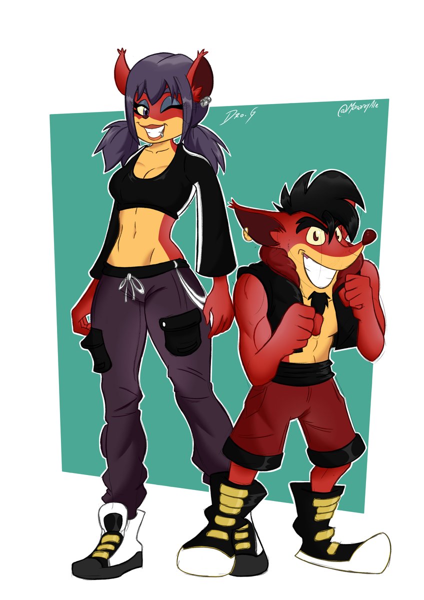 I present to you my OC's Dro G and Drina, then I will give you more info about the characters 🌀💥 ahi si agregé el rodeado blanco, y si que quedo bien jajaj @Magaska19 #Crashbandicootfanart #CrashBandicoot
