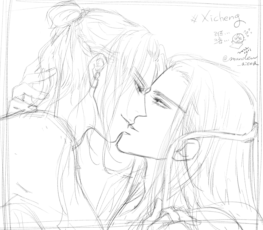헤헤...저두 리엔님(@LienMdzs) 소장본 배계에 축전드린 원고 살며시 공개해봅니다...(그림이 너무 없어서ㅜㅜ;;;;;) 내용은 리엔님의 글에서 발췌해서 그렸어요. 모두 리엔님의 멋진 글(lien--p.postype.com/post/8890674)을 읽어주세요!! (3/7) #曦澄 #xicheng