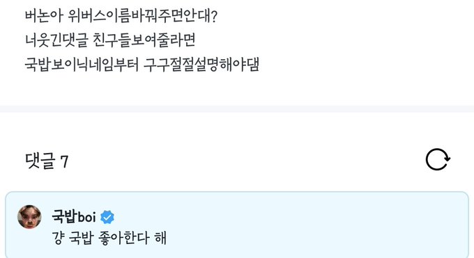 버논아 위버스 이름 바꿔주면 안되? ㄴ걍 국밥 좋아한다 해