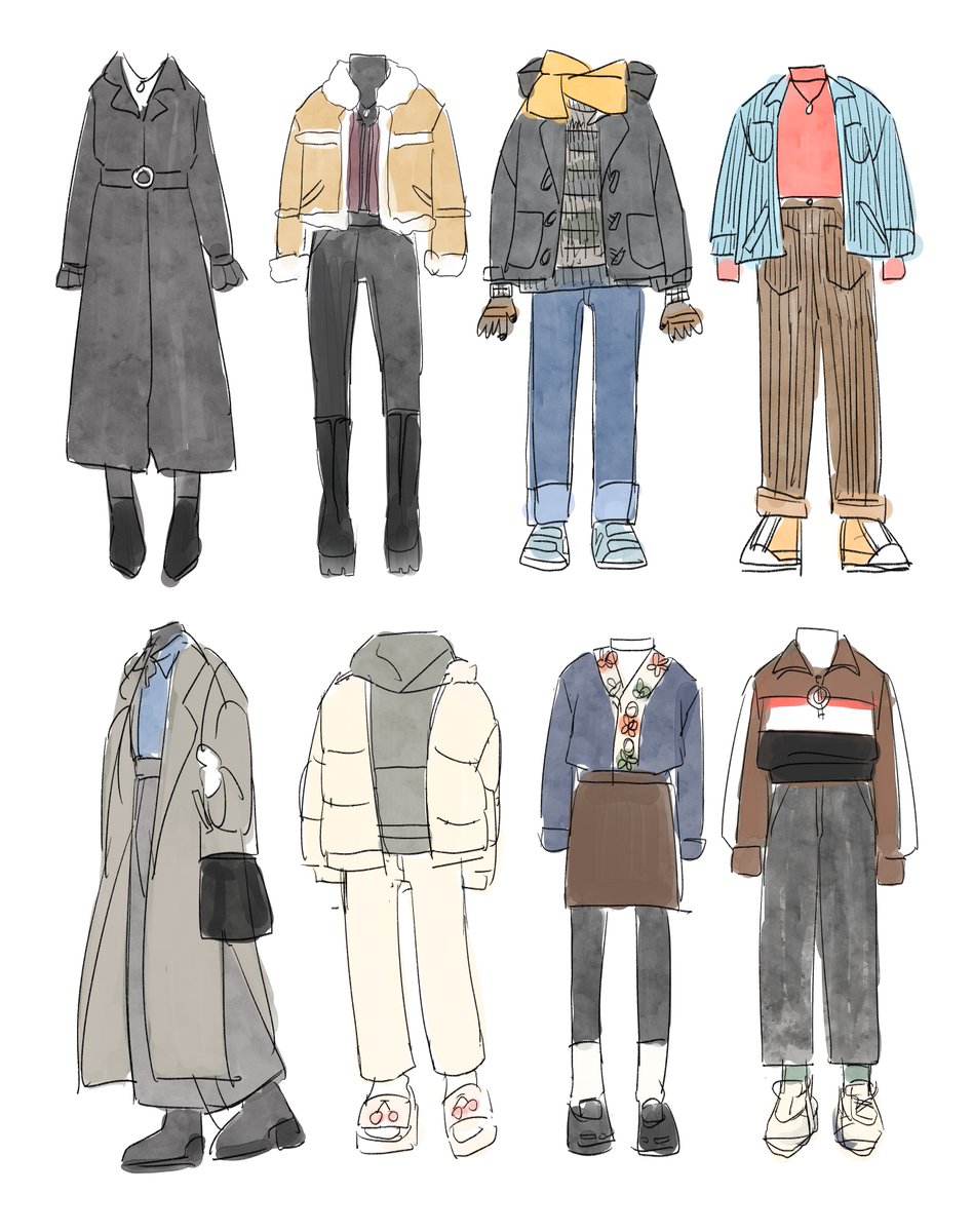 셉친구들한테 내 옷 입혀볼까 싶어서 일단 기억나는대로 최근 출근룩 그려봄,,,윤덩안 손민수룩이나 홈런st룩(ㅋㅋ)도 입어봄