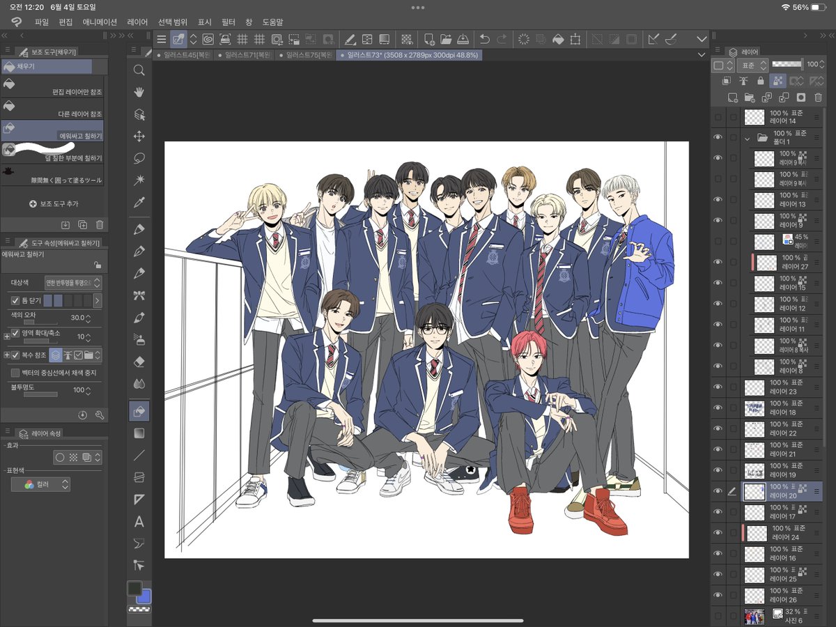천년전 교복그림 아직도 완성을 못했는데 그새 다들 열일곱이 아니게 되고😭
