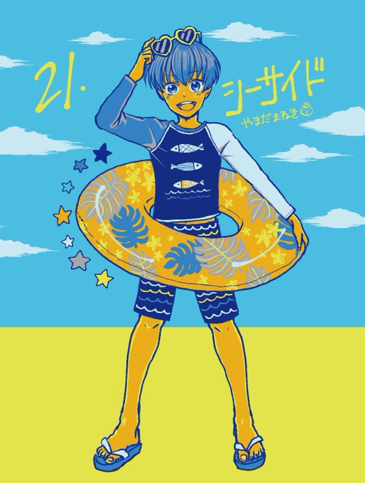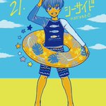 21.シーサイドのこまるそうじろうです!! あさこさん(@asa_ko_coc)ありがとうございます!!! 水着は子ども用ので可愛いのがあったから着せました♡ #リプをもらった番号の色を使って絵を描く