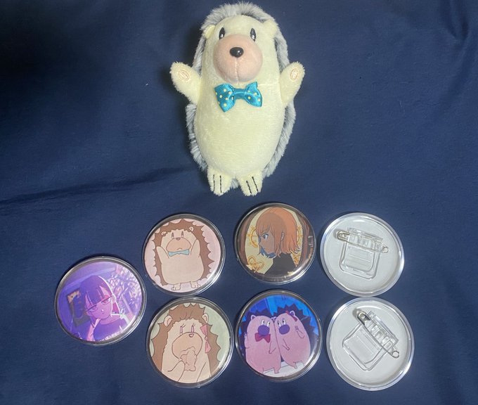 ずとまよバッジ&キーホルダー完成✨🦔✨ 楽しみすぎて早く作りすぎたww🤣 「温れ落ち度」でお会いできたら配りたい!!! サイズこれぐらいだよっていうの伝えたくて、うにぐりくんも一緒に写真撮った! #ずとまよ #ずっと真夜中でいいのに。 #温れ落ち度 #ずとまよファンアート