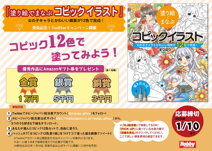 ホビージャパンの技法書シリーズに新たなコピック技法書が加わります! 『やさしいコピック入門 コピックチャオ20色あればなんでも描ける!!』(すーこ著/角丸つぶら編) コピック技法書の決定版になること間違いなしです! ぜひ、お楽しみに(^o^)丿 hobbyjapan.co.jp/manga_gihou/it… #コピック
