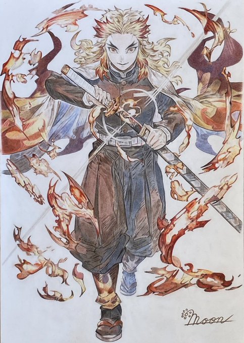 煉獄さんお誕生日おめでとう✨✨✨ (過去絵です) 今日は、みんなの煉獄さんへの変わらない愛で溢れていて、眺めていると幸せになれます💕 #煉獄杏寿郎誕生祭2022 #煉獄杏寿郎生誕祭2022 #色鉛筆画 #模写