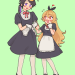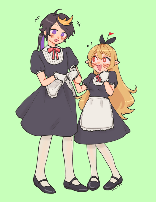 pomu gave mii!shu a matching maid outfit and he liked it!! couples' cosplay...... couple goals........... "maid for each other"........ ※ this is tomo life mii!pshu, not irl pshu lol #PomuPaint #YaminoArt